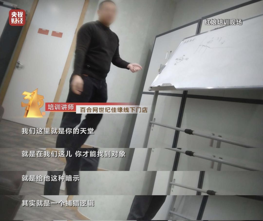 2024年的315晚会,曝光了一场骗局。记者卧底婚恋交友平台,经过多轮面试后,成为一名专业“红娘”,进入公司培训流程。让记者感到惊讶的是,红娘的培训课程是“话术”,最重要的一步是:抛诱饵。