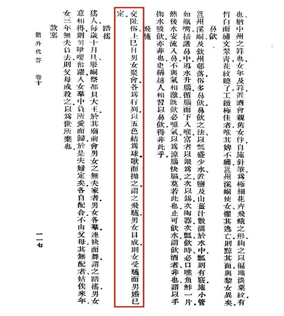 传说壮族三月三来源于对北方大帝真武神的祭祀,壮族三月三是对中国古代“上巳节”的传承。现“三月三”节日在中原地区逐渐衰落了,而壮族人民在历史中将具有民族特色的文化渗透在壮族三月三节日中,使壮族三月三得以在民族文化中延续传承。唐代周去非《岭外代答》记载南方三月三:“交趾俗,上巳日,男女聚会……”交趾,亦作交址,原为古代地名,泛指五岭以南。上巳日即为三月三。