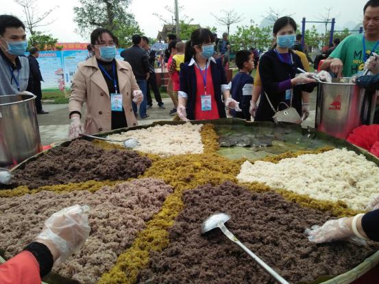 现在生活好过了,但三月三吃黑米饭仍然少不了。哪怕远在他乡的人,也仍然想念这种黑米饭的味道。目前在武宣,“三月三”吃黑色糯米饭已不仅仅是壮家人专利,各民族的人也喜欢上这种黑米饭了。当然现在物质丰富,不仅仅有黑米饭,而且还有多种多样的五色饭。
