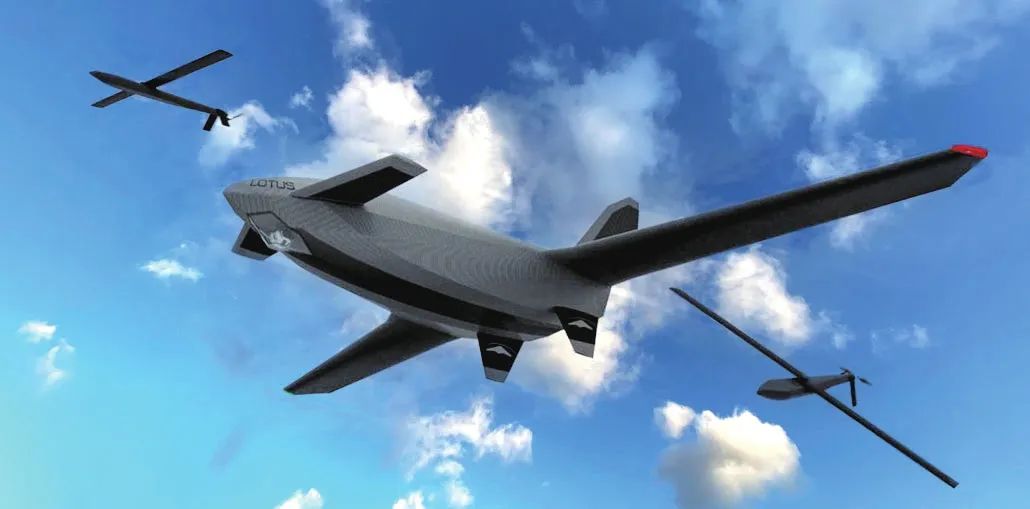 IDE公司的LOTUS系统,“母机”与空射的“子机”组成编队,在理念上紧跟当下的无人机技术发展方向。LOTUS系统的一大亮点是由“子母机”组成“蜂群”来协同执行情报、监视和侦察(ISR)任务。系统中的“母机”(有报道称,其翼展可能达到9米)可最多挂载4架空射型无人机来作为“子机”,“母机”可在防区外发射“子机”前出执行高风险的IRS任务,并且可以使用多架“子机”来组网协同完成任务,扩大任务范围。