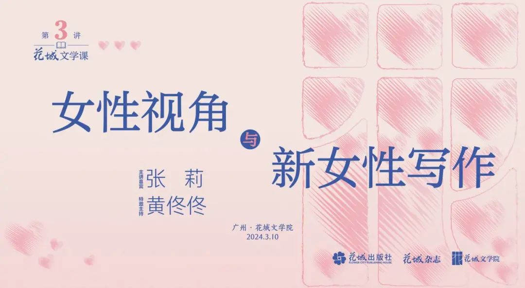 “花城文学课”第3讲邀请张莉教授开展题为“女性视角与新女性写作”的讲座,作家、媒体人黄佟佟主持讲座,近百名观众现场参与。讲座在“花城文学课”以及中国作家网、出版人、南周书院、跳岛LIVE、小镇的诗等视频号平台同步直播,近1.5万人次线上观看。