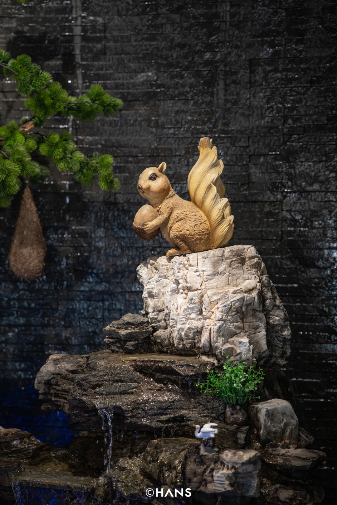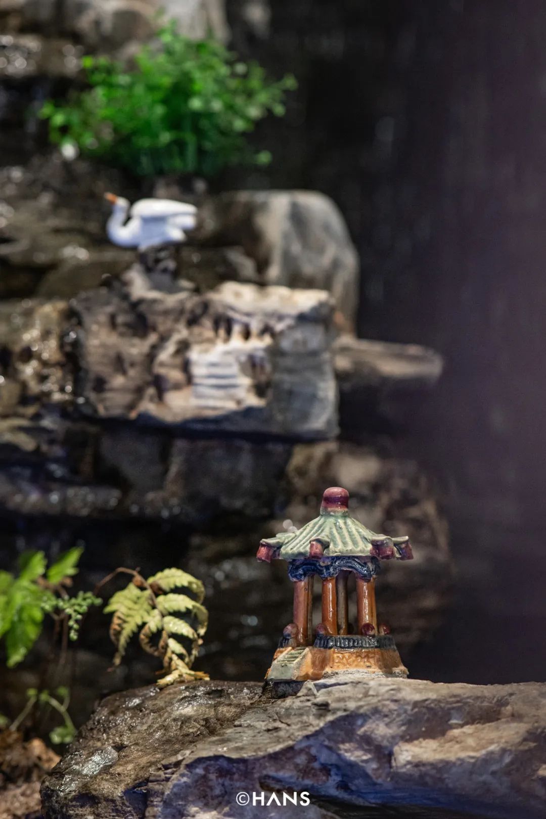 店里像个微缩园林盆景,巧手营造出小溪、湖泊、瀑布,水不在深,有鱼则灵,几十条锦鲤悠闲游弋。