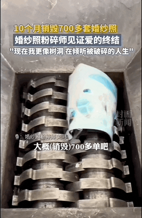 而在河北廊坊,有家工厂悄然兴起了一项颇为“奇葩”的新业务——婚纱照销毁服务。