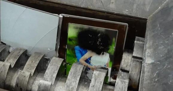 无论是十公分厚的琉璃相册,还是一米多高的油画墙纸,500多段亲密关系都被一寸寸吞进机器开口,搅了个稀巴烂。