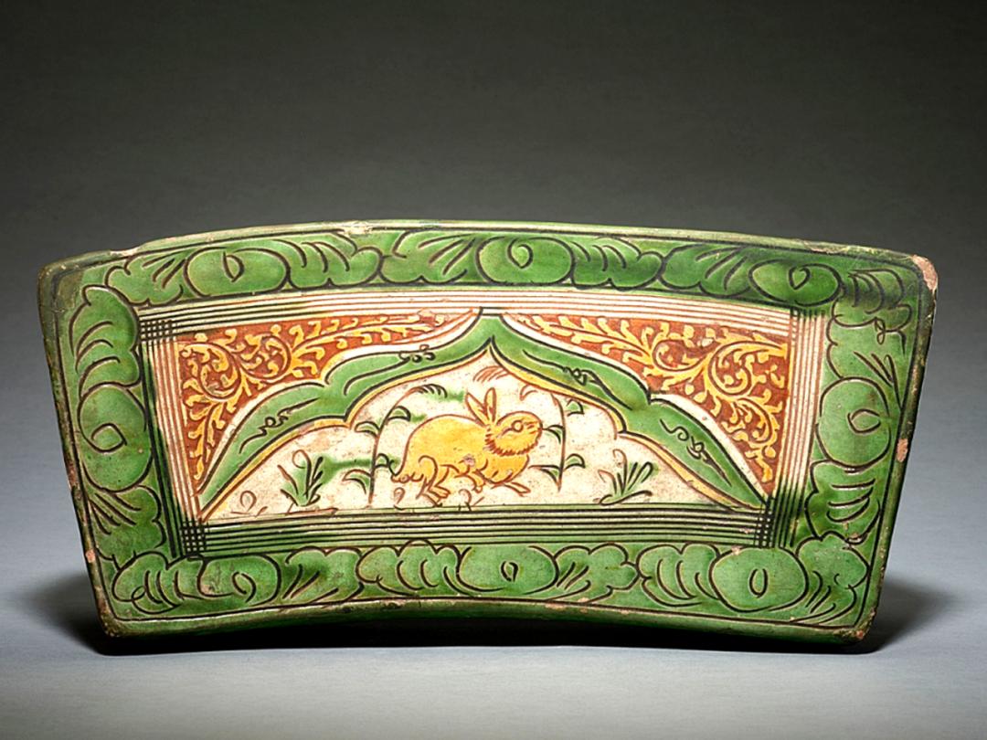 宋 三彩刻划兔纹扇形枕