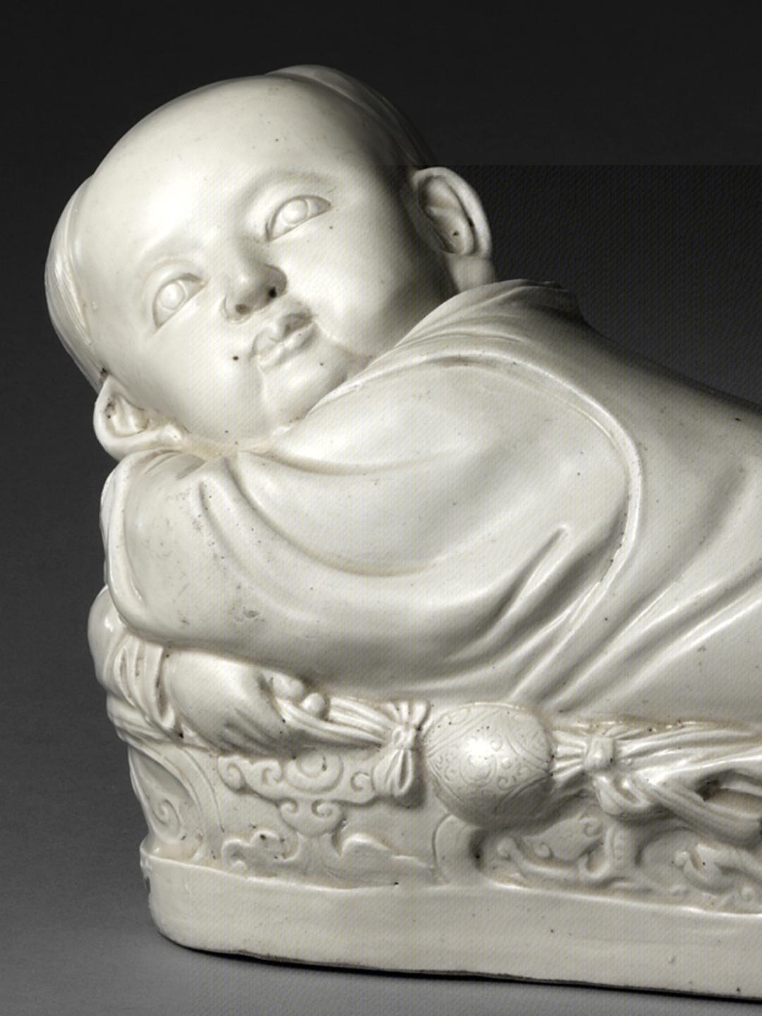 北宋 定窑白釉孩儿枕(局部)