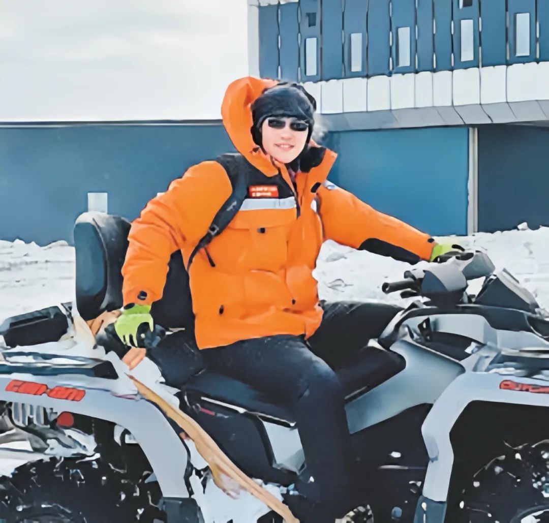 ▲在秦岭站建设现场,祝贺驾驶雪地摩托通勤(林贻语摄)