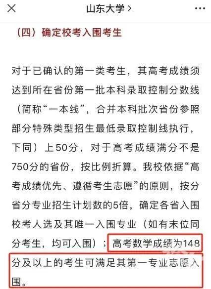 在入围条件这一块,西北工业大学、国防科技大学、中山大学等多所名校的招生政策里,都明确提到,数学单科成绩足够优秀即可破格入围。有不明真相的网友评论“数学单科为王的时代到了”。