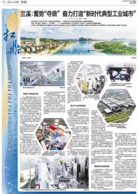 024月17日,《浙江日报》整版刊发《兰溪:蓄势“夺鼎” 奋力打造“新时代典型工业城市”》,关注近年来,兰溪市锚定浙江省“制造业天工鼎”目标,推动传统产业加快转型,向“新时代典型工业城市”大步迈进。