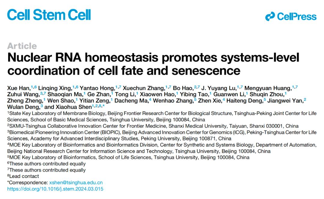 清华大学沈晓骅团队揭示核RNA稳态促进细胞命运和衰老的系统性协调