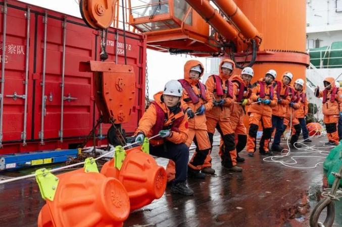 1月6日,中国第40次南极考察队在阿蒙森海成功布放深水生态潜标,这也是中国首次在极地布放生态潜标。新华社记者 周圆 摄——看多个“首次”:探秘“5站5海”