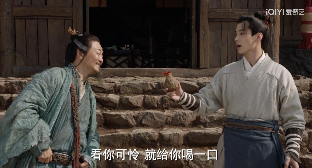 而是在还原了游戏里客栈门口讨酒喝与李逍遥偶遇,并且相约十里坡山神庙学武功的情节。