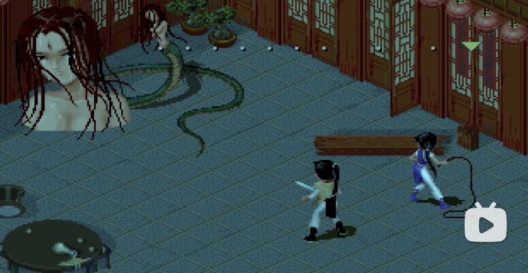 然后就是在门口遇到姥姥。因为灵儿被看到了身子,所以姥姥只好逼迫李逍遥,要么娶灵儿,要么去死。