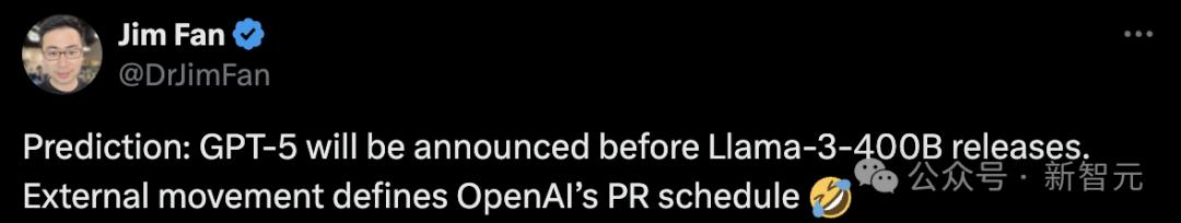 没想到,70B都这么能打,400B简直不敢想象。英伟达高级科学家Jim Fan预言,「GPT-5一定会在Llama 3 400B发布之前出世」!