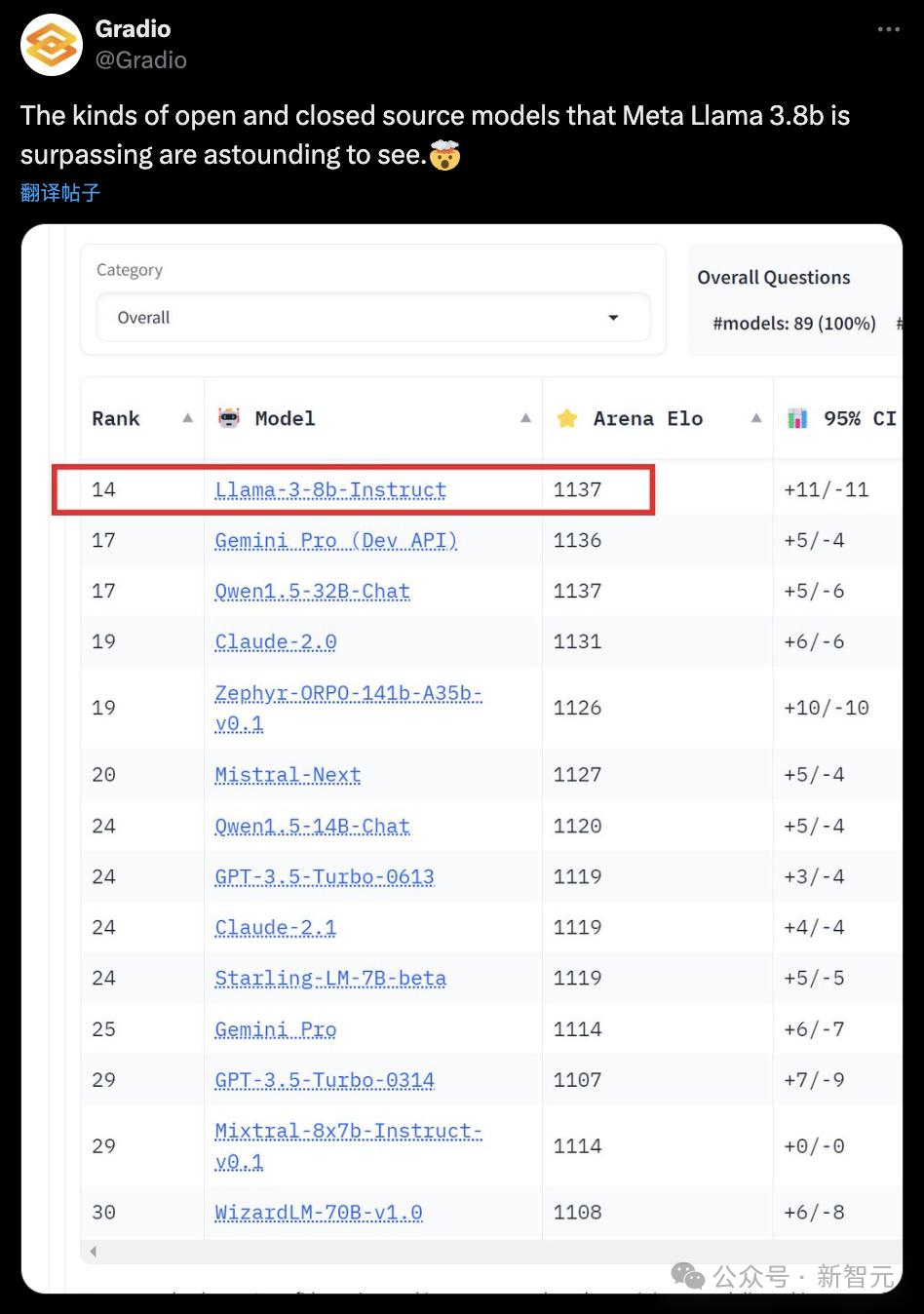 在一个总榜上,Llama 3超越了许多的开源、闭源模型。