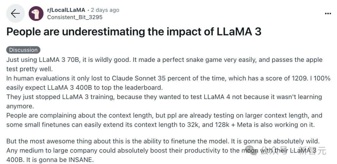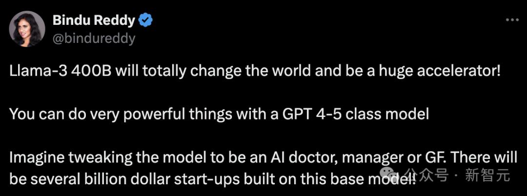 AI创业公司Abacus AI的首席执行官表示:「Llama 3 400B将彻底改变世界,成为一个巨大的加速器!你可以使用GPT 4-5级别的模型做非常强大的事情。