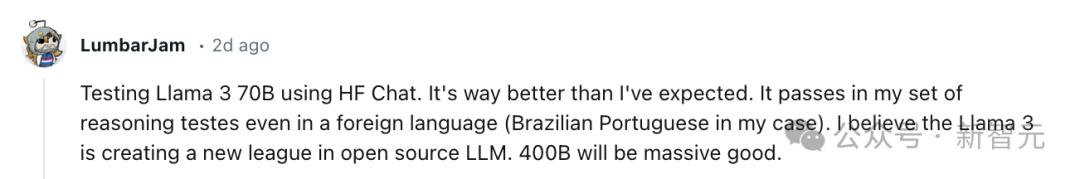 还有人通过HF Chat使用葡萄牙语测试LLaMA 3,结果发现其超出预期,通过了推理测试。