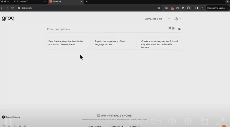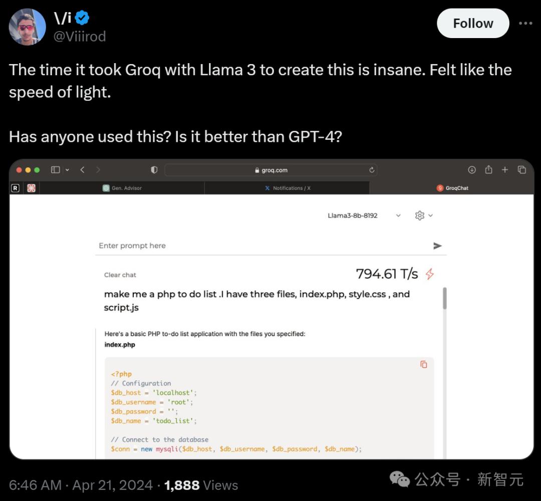 每秒输出800个token,Llama3惊呆网友另一边,Groq也第一时间提供了对Llama3 8B和70B的支持。