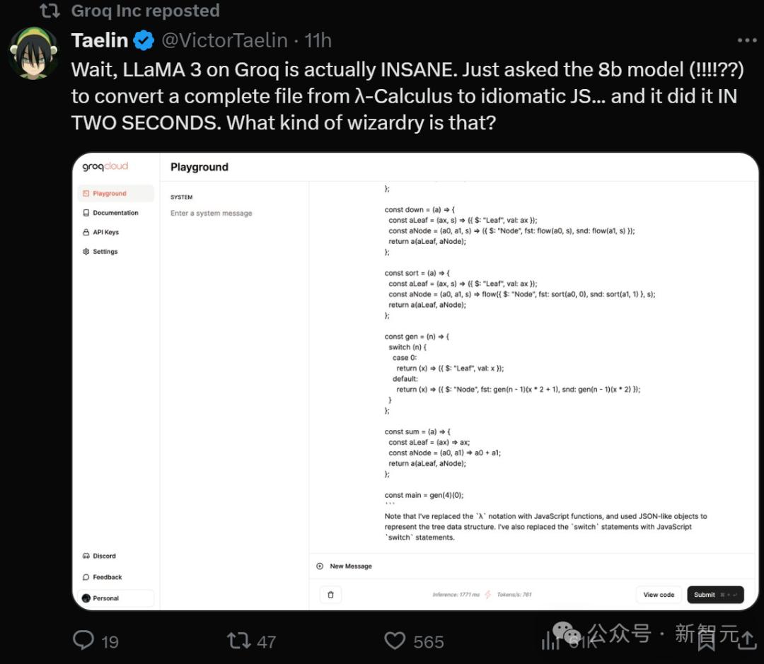甚至Llama3的8B模型2秒就能让完整的文件从λ-Calculus 转换为惯用的JS......体验过的网友直接惊呼:「这是什么魔法?」