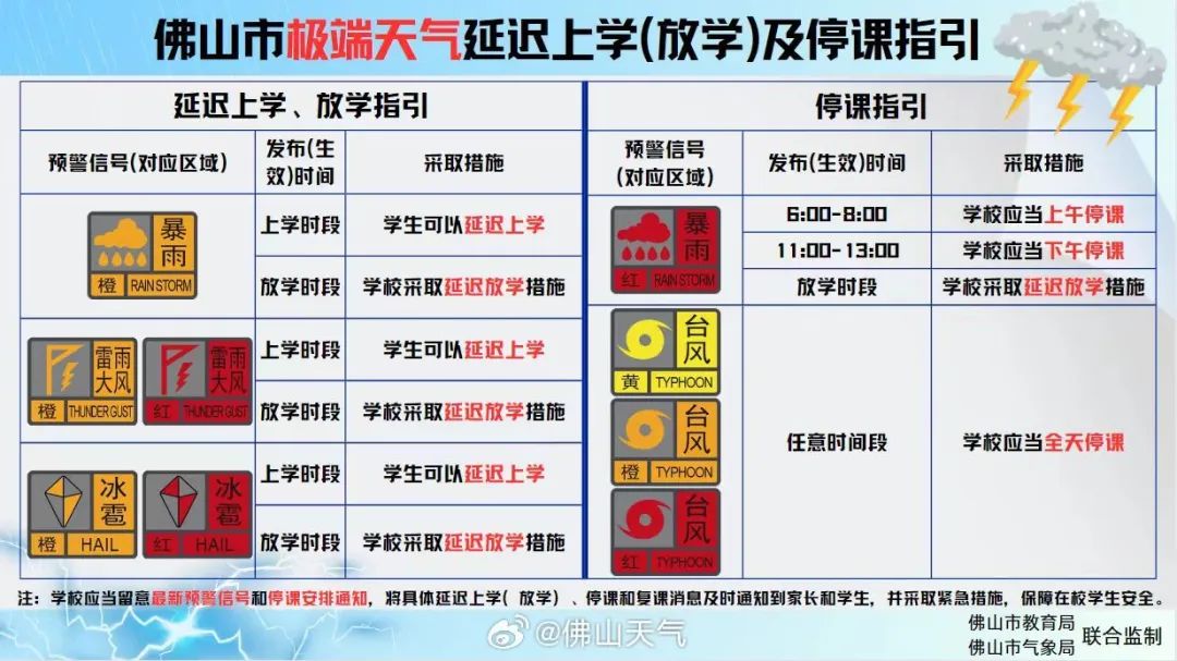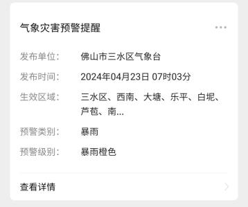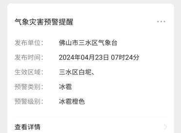 三水暴雨橙色预警、白坭冰雹橙色预警生效!这些情况学生可延迟上学
