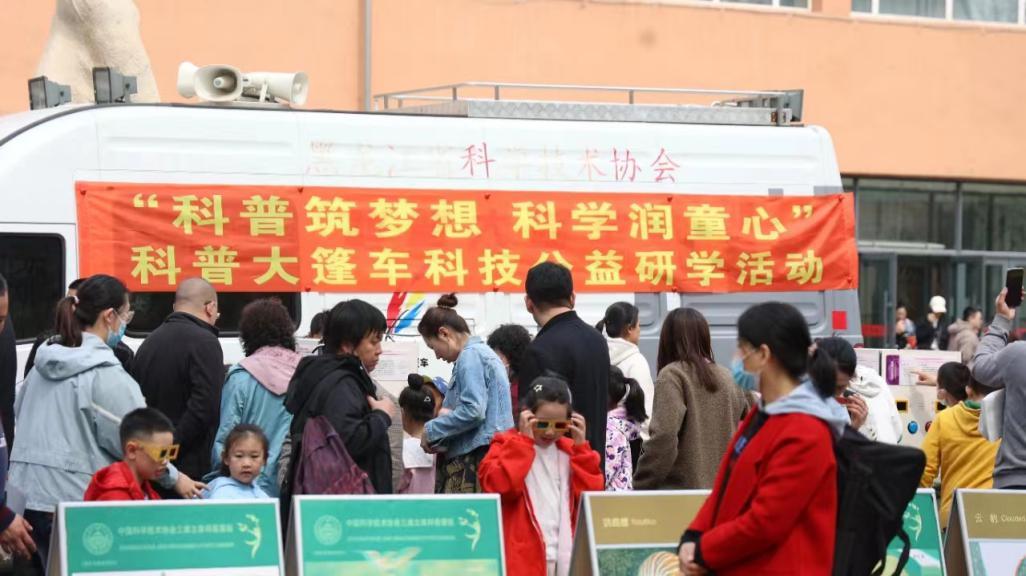 省科协组织的科普大篷车为现场家长和孩子提供了一场别开生面的科学实验表演。