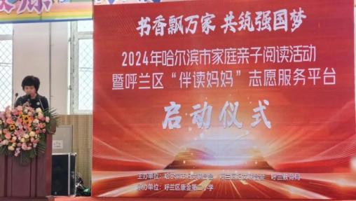 哈尔滨市妇联联合呼兰区妇联举办“伴读妈妈”志愿服务平台启动仪式,“伴读妈妈”们分享成果。