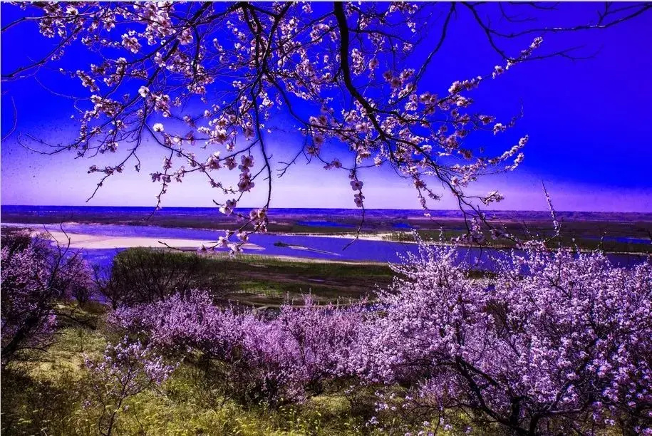 粉白的桃花惊动了湛蓝奔涌的松花江