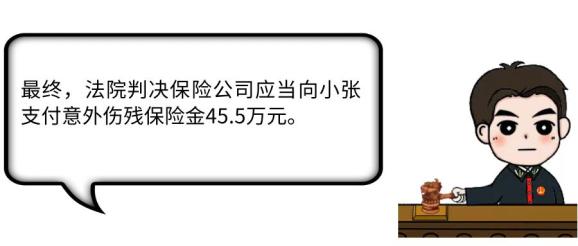 小张向保险公司提出理赔申请,要求保险公司支付其45.5万元(保险金额65万X四级伤残理赔比例70%)保险金,却被保险公司拒赔。无奈之下,小张只得诉至法院。