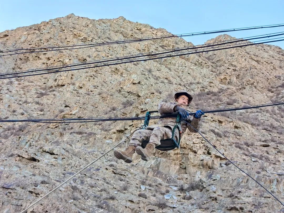 雪域高原的我们,在雪山蓝天,人迹罕至的环境里,颇有一种与世隔绝的感觉,过雪地巡线,路滑难行,战靴在步步前行中逐渐被染成白色。