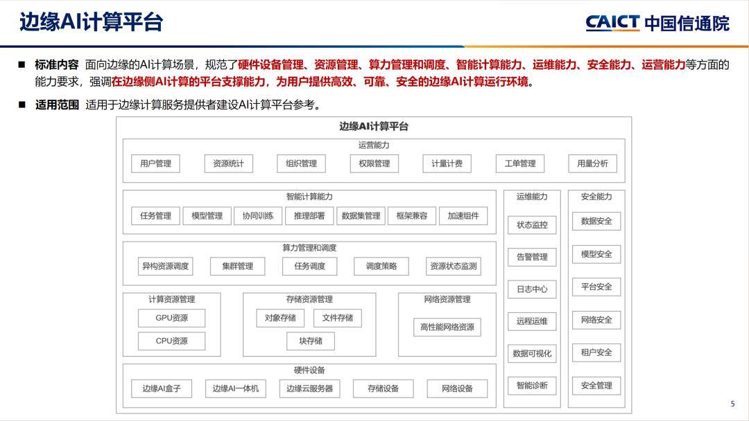 中国信通院解读标准并启动评测,边缘AI系列囊括边缘AI计算平台、边缘AI智算一体机、边缘AI计算设备等标准,内容全面覆盖了边缘AI计算软硬件技术、平台技术、智能计算能力、协同计算等能力规范。分布式云智能计算平台标准面向分布式云架构下的智能计算场景提出能力要求。