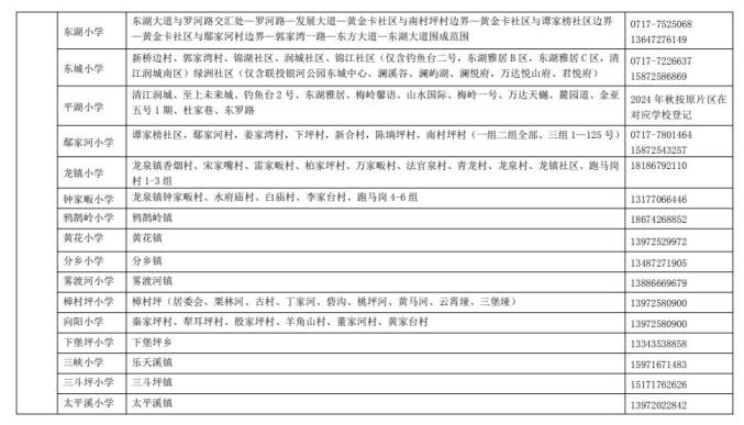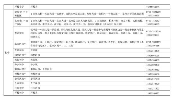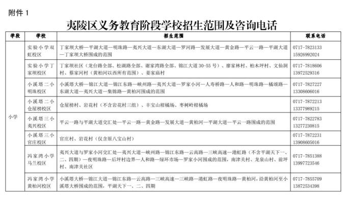 夷陵区义务教育阶段学校招生范围及咨询电话
