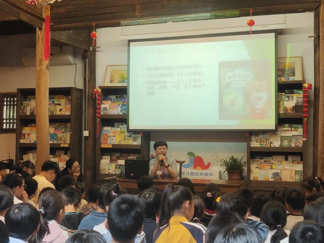 在童话书屋名家讲座活动上,著名儿童文学作家汤素兰与孩子们共同探讨经验、观察和想象等对童话创作的重要性,在孩子们心中种下了想象力和创造力的种子。