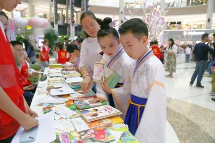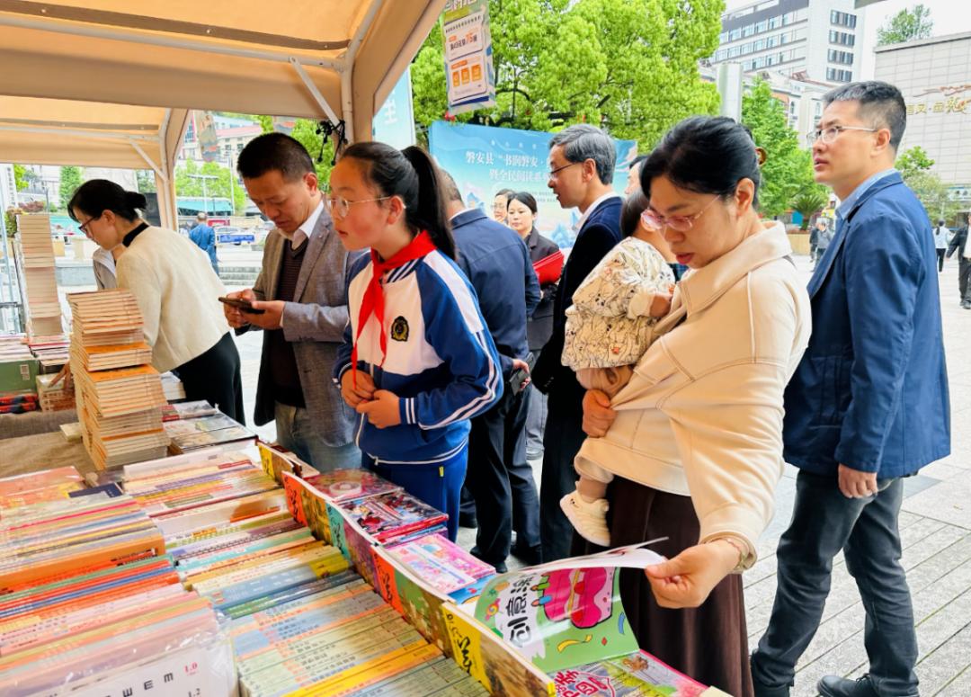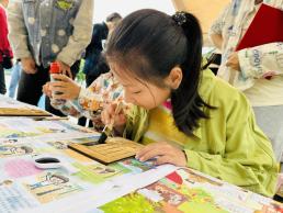 磐安县妇联联合县委宣传部等单位共同举办了“书润磐安·阅享文明”书香集市暨全民阅读系列活动。在“书润磐安·多彩非遗”展示体验区域,许多小朋友在家长的陪伴下体验了造纸术、雕版印刷、扇面作画等非遗手工制作。当天,还开展了“安心‘童’行·共护‘未’来”绿书签宣传活动,到场读者可以免费领取绿书签等宣传资料,前来参观的读者也纷纷在打卡墙上签字、留影,凝聚一段美好的书香回忆。