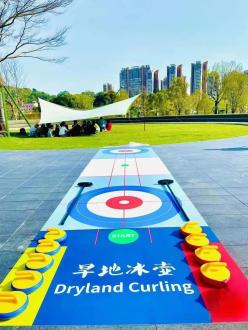 设置趣味游戏环节,包括指压板跳绳挑战、踢毽子、呼啦圈挑战、打画片挑战、旱地冰壶挑战等趣味游戏。