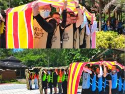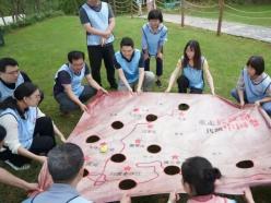 利用不倒森林、风火轮、珠行万里U型槽等游戏环节,开展团队协作游戏拓展,加强团队协作与集体趣味性。
