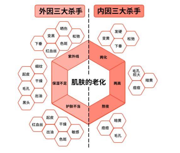 ▲皮肤内因三大杀手和外因三大杀手。图片来源:《精准护肤》