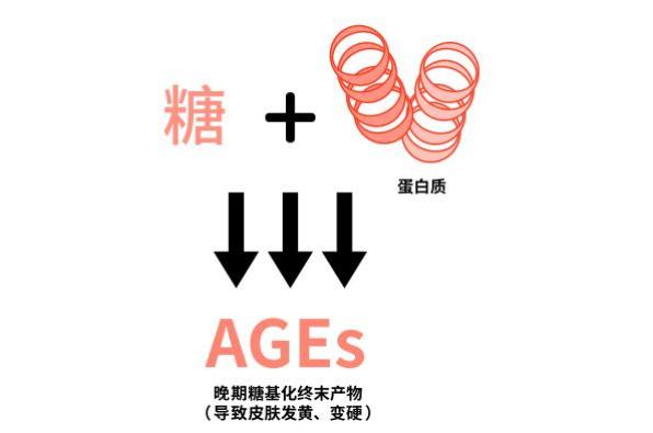 据了解,糖基化过程具有不可逆性,蛋白质变性后,会转化成 “晚期糖基化终末产物”(AGEs),这种物质会加速皮肤衰老,这也是现在各类护肤品都在抗糖原因。