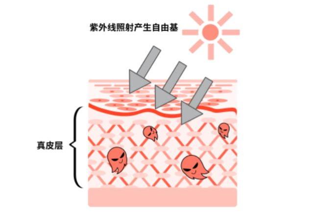 1.紫外线:皮肤老化仅有 20% 源于自然老化,剩下的 80% 源于光老化,几乎所有的皮肤问题都与光老化有关。长波紫外线(UVA,波长 320~400 纳米)能透过表皮层,直达真皮层,使皮肤产生活性氧自由基。而且它能穿透大部分的透明玻璃和塑料,造成皮肤晒黑、老化。并且紫外线对皮肤伤害并不是一次性的,也就是说每接受一次没有防护的日光照射,都会使我们的皮肤离衰老更进一步。