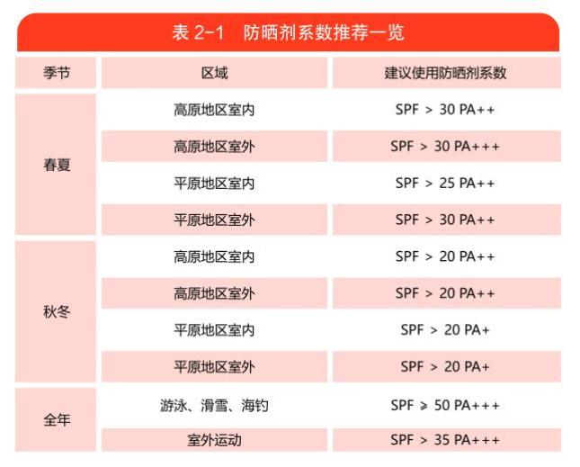 ▲防晒剂系数推荐 图片来源:《精准护肤》