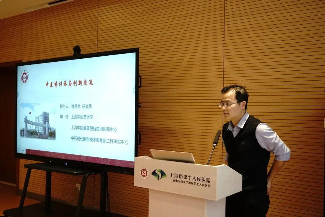 4月23日,中医药传承与创新研讨会在上海中医药大学附属第七人民医院召开。中国科学院院士林国强,上海中医药大学副校长舒静、上海中医药大学产业发展中心主任唐靖一,浦东新区卫健委副主任郁东海、上海康桥药业有限公司总经理陈翔等出席。七院院长禹宝庆致欢迎辞,会议由副院长胡聃主持。