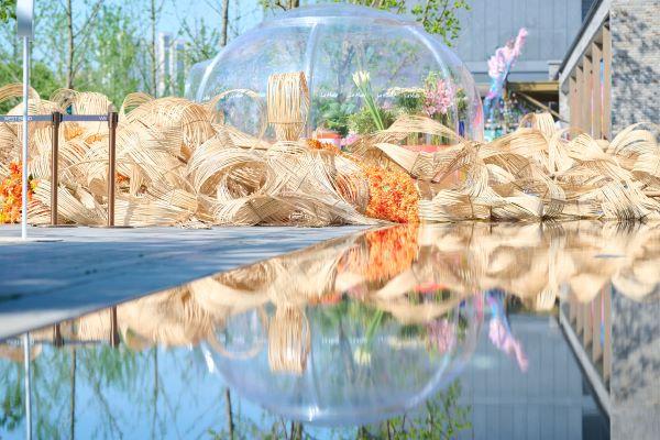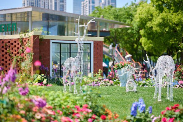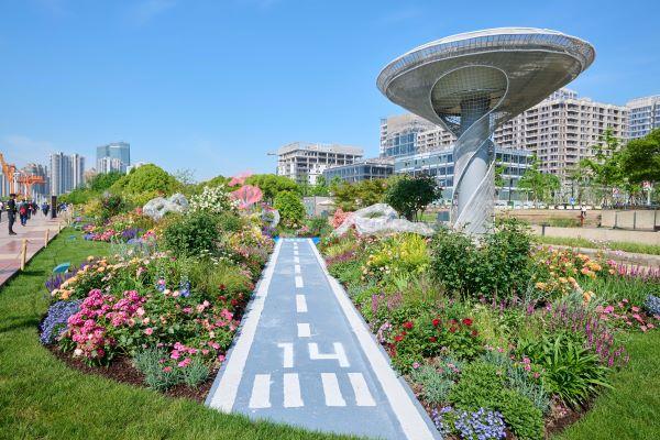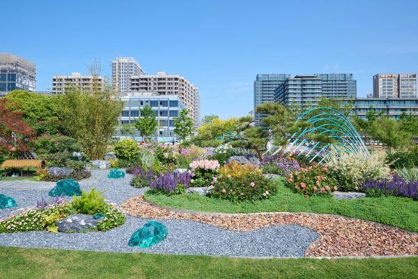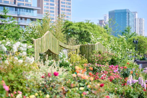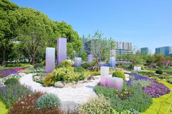 国际花园(法、英、瑞)同时,在东安路路口布置新加坡绿色生态园艺展示区,面积约400平方米,以“花境与未来”为主题,将艺术装置融于自然花境之中,充分彰显国际范。