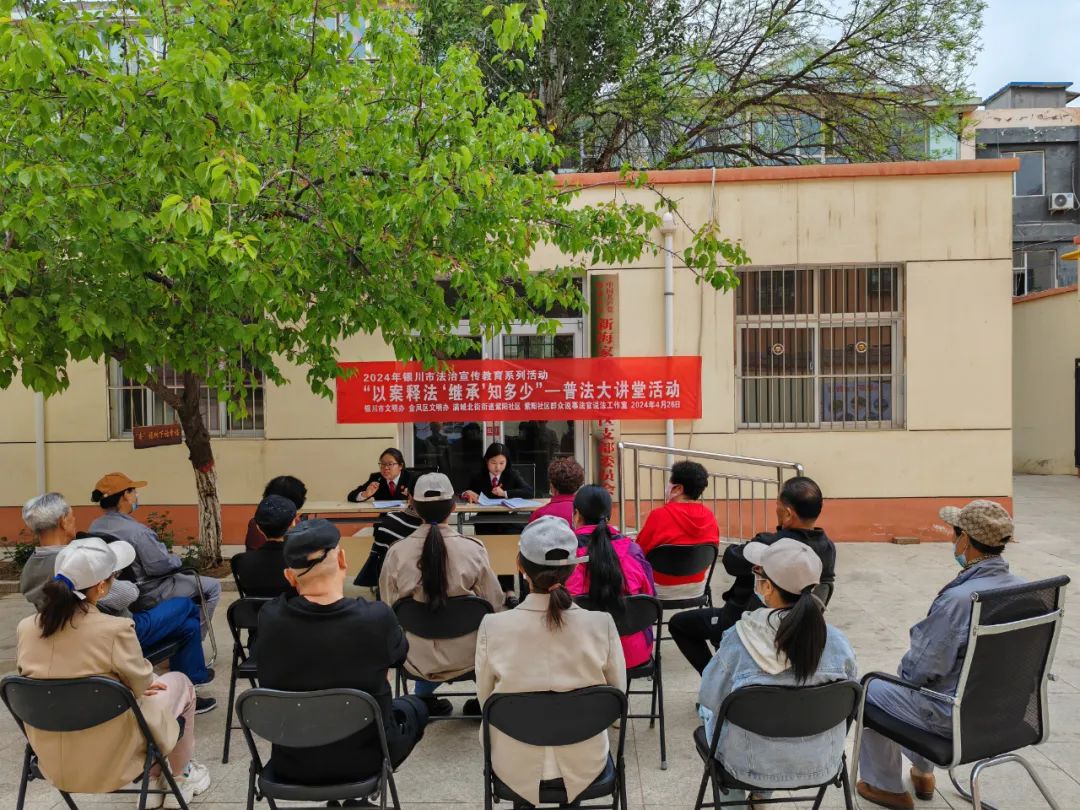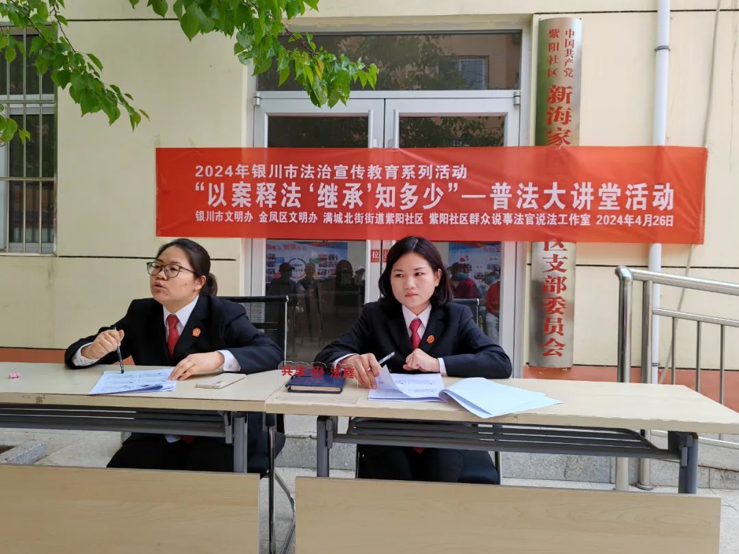 4月26日下午,金凤区人民法院民事审判第一庭审判员陈娟、周飞燕来到金凤区紫阳社区,参与“群众说事 法官说法”活动,为社区居民解读民法典继承编中遗产继承的相关内容。