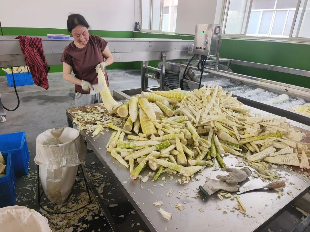 时值春笋上市时期,李家镇的妇女们经常结伴去大山深处挖笋,一上午便能满载而归。随后,新鲜的竹笋笋肉以每斤约1.5元的价格售卖至工业园区的笋干工坊,进行深加工。