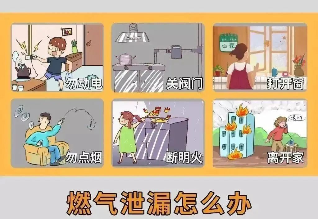 燃气泄漏您别慌先关总阀再开窗所有电器都不碰亲情不舍撤为纲邻里情深通知到撤到楼外电话讲直拨“救我气就气”(95797)
