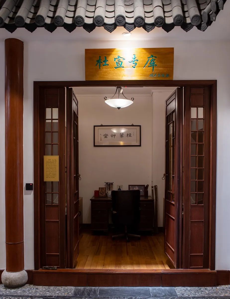 1999年上海鲁迅纪念馆新馆和“杜宣专库”同步建成,杜宣专库正面墙上悬挂着杜宣手书的隶体“桂叶草堂”镜框横匾。这是杜宣于己卯年(即1999年)为自己的书房所书的斋名。杜宣,原名桂苍凌,夫人名为书房以两人的姓起名“桂叶草堂”,以示伉俪互敬互爱、相互砥砺。