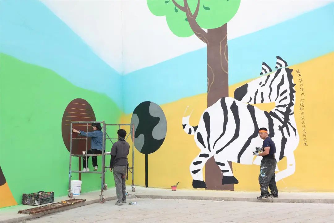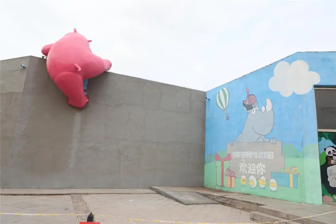 园区新搭起了爬墙河马长鼻子大象