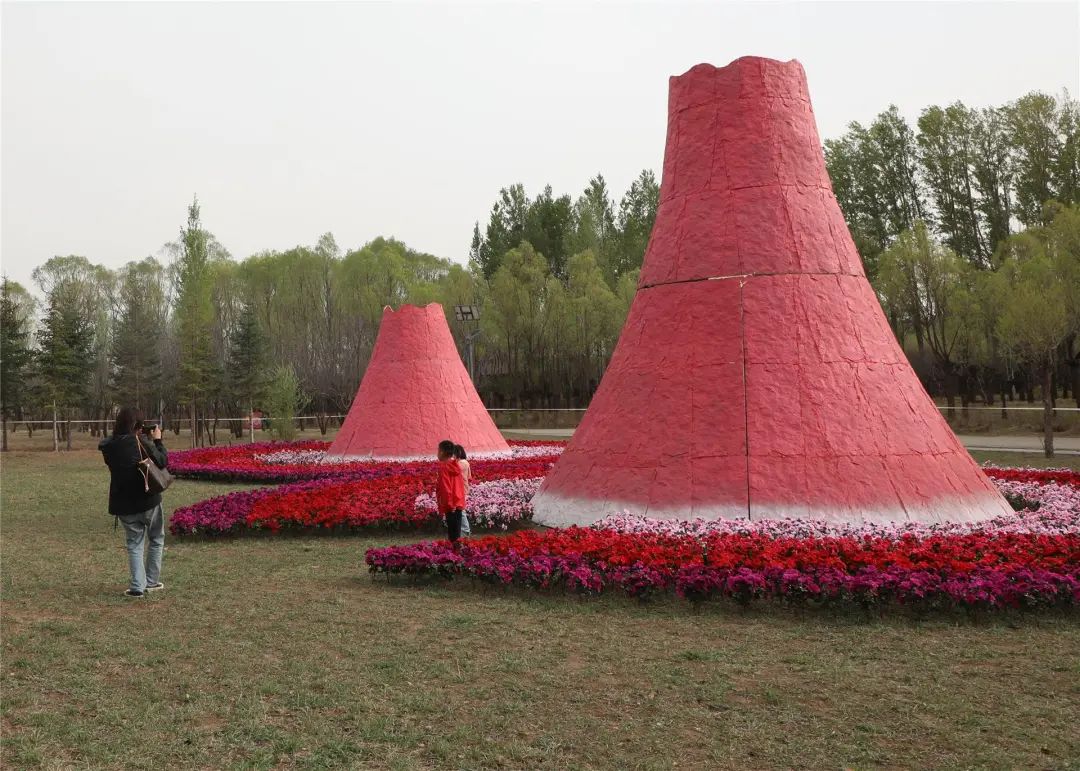 高6米、宽6米的大型粉色火山以及围绕在粉红色火山旁