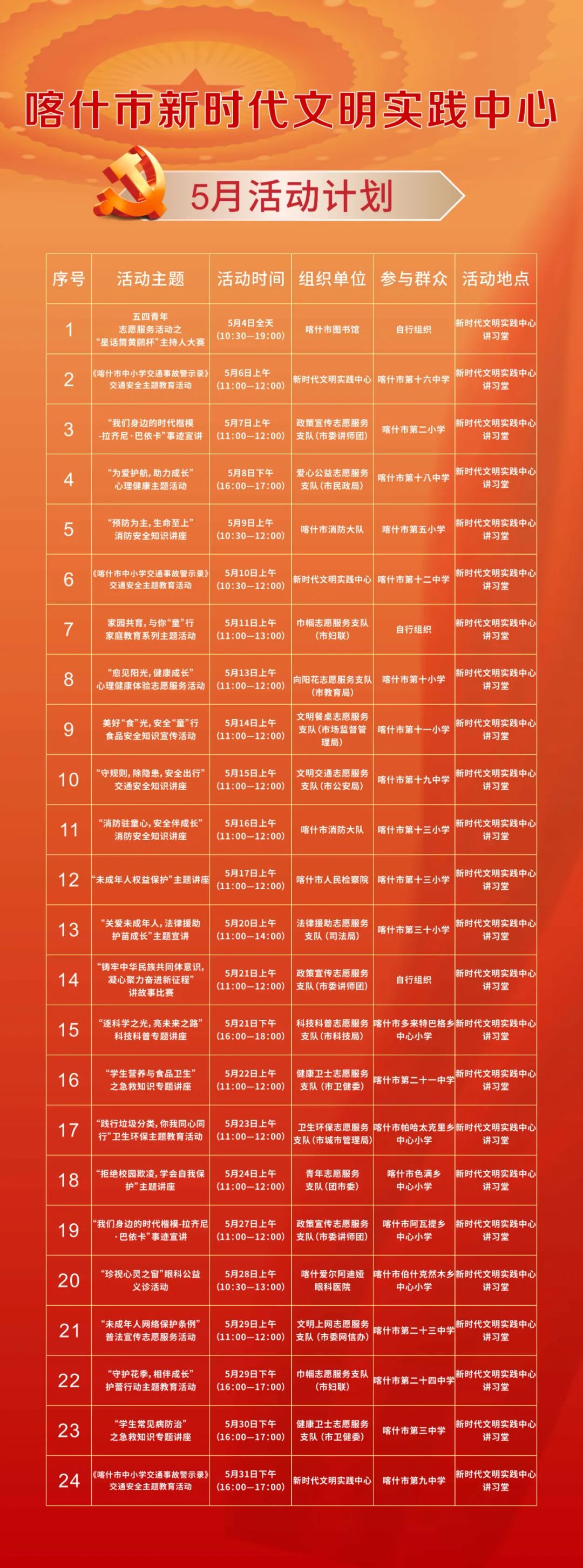 【千万别错过】喀什市新时代文明实践中心5月活动安排来啦~~