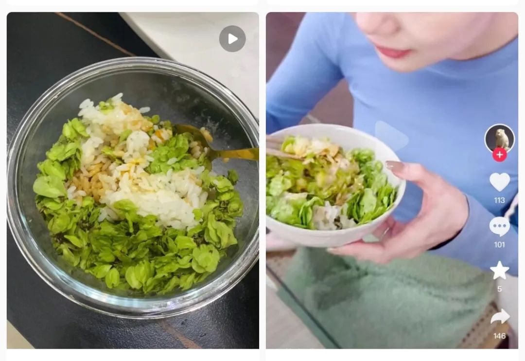 不过,开头提到最近流行的榆钱拌饭要小心,不要随意跟风。这款榆钱拌饭是这样做的:做熟的米饭+一颗生鸡蛋+倒入少许酱油+一把榆钱,然后搅拌均匀,就直接吃了。