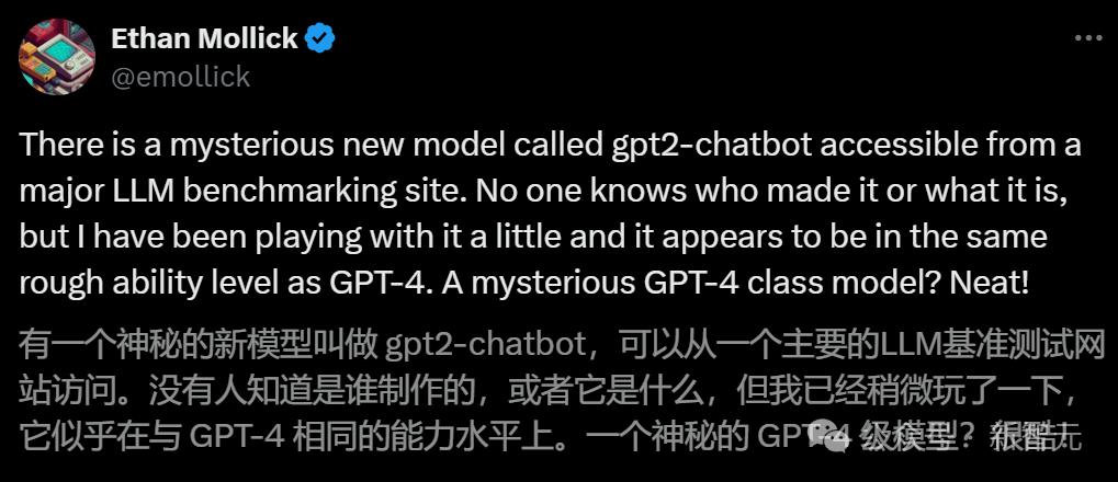 在LLM竞技场chat.lmsys.org上,这个神秘模型展现出了莫名强大的能力,甚至直接超越GPT-4,实在令人震惊。